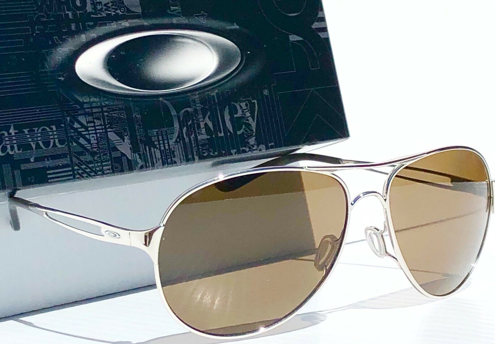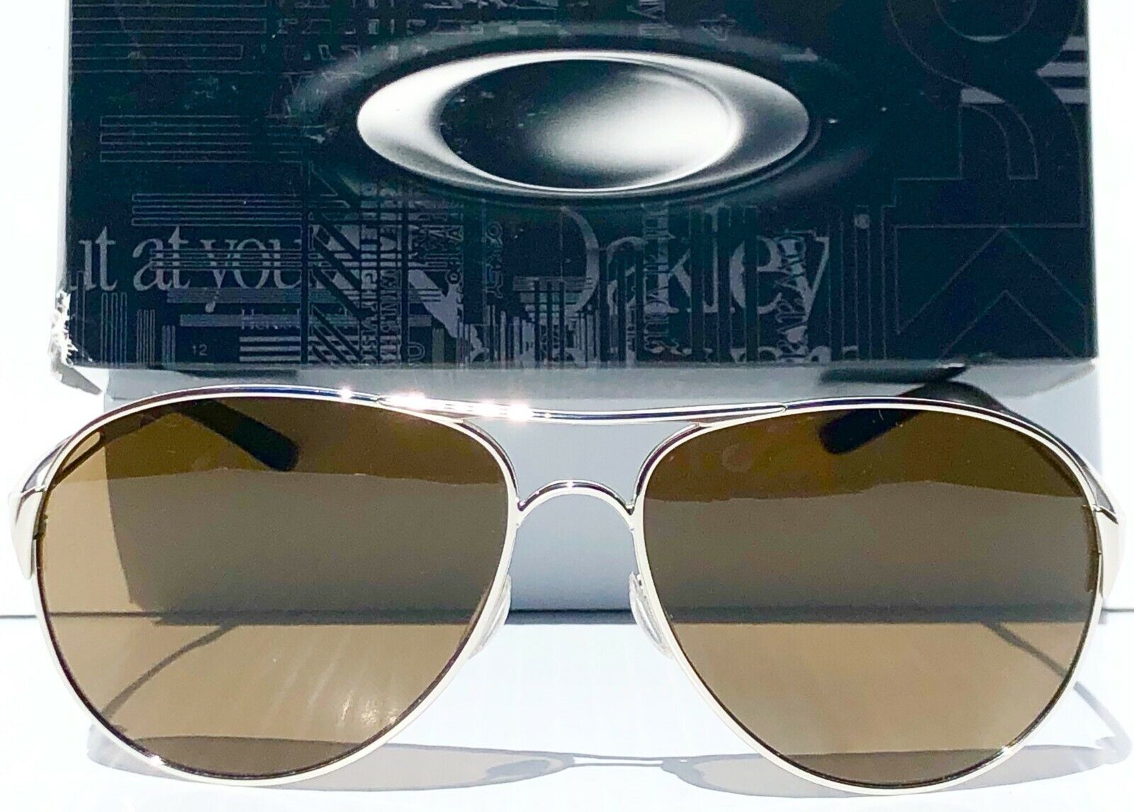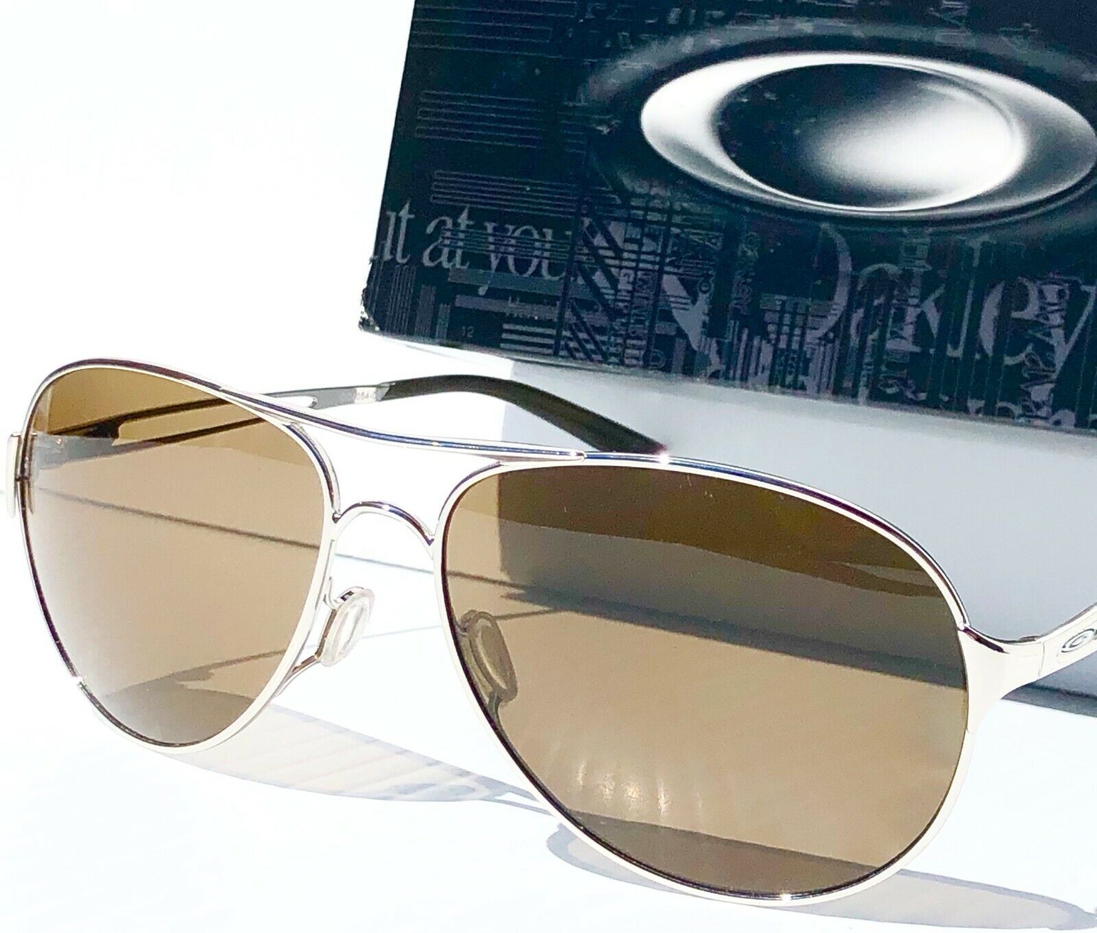 NEW Oakley CAVEAT in Polished Silver Frame with POLARIZED Galaxy Brown Lens Sunglasses!