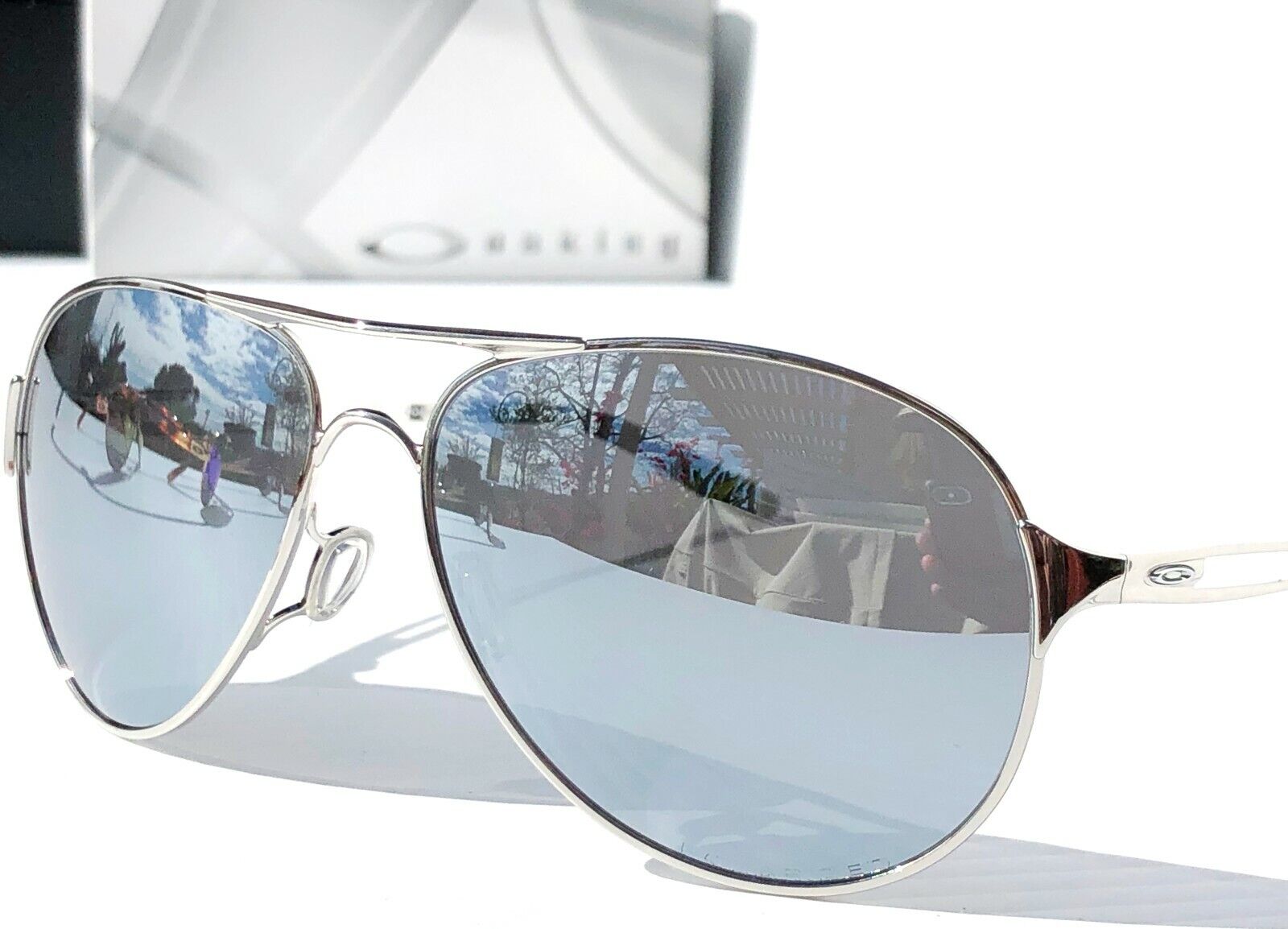NEW Oakley CAVEAT in Polished Silver Frame with POLARIZED Galaxy Chrome Lens Sunglasses!
